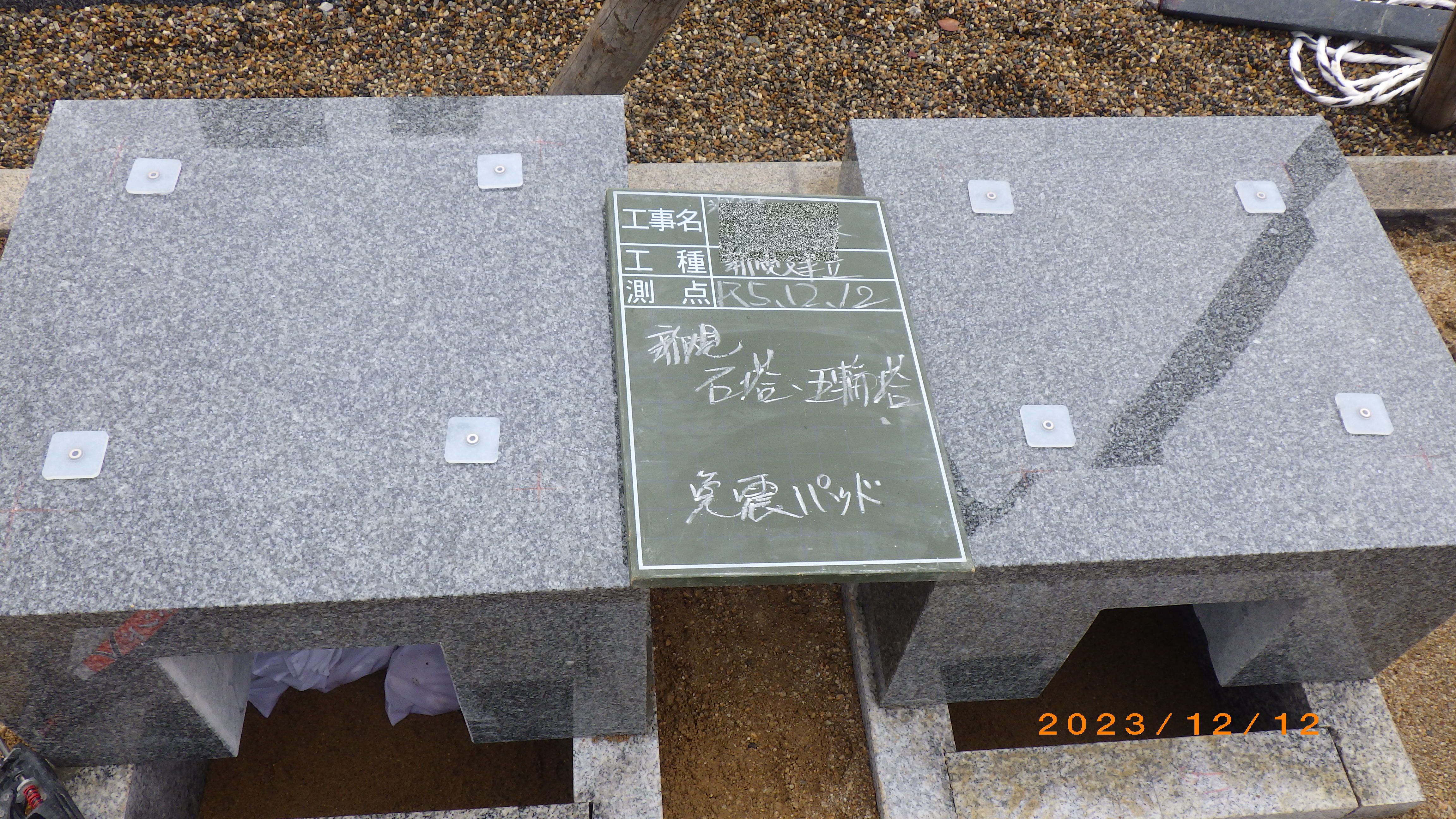 下台の天端にそれぞれ四つ乗っている白いものは、地震対策の免震パッドです。