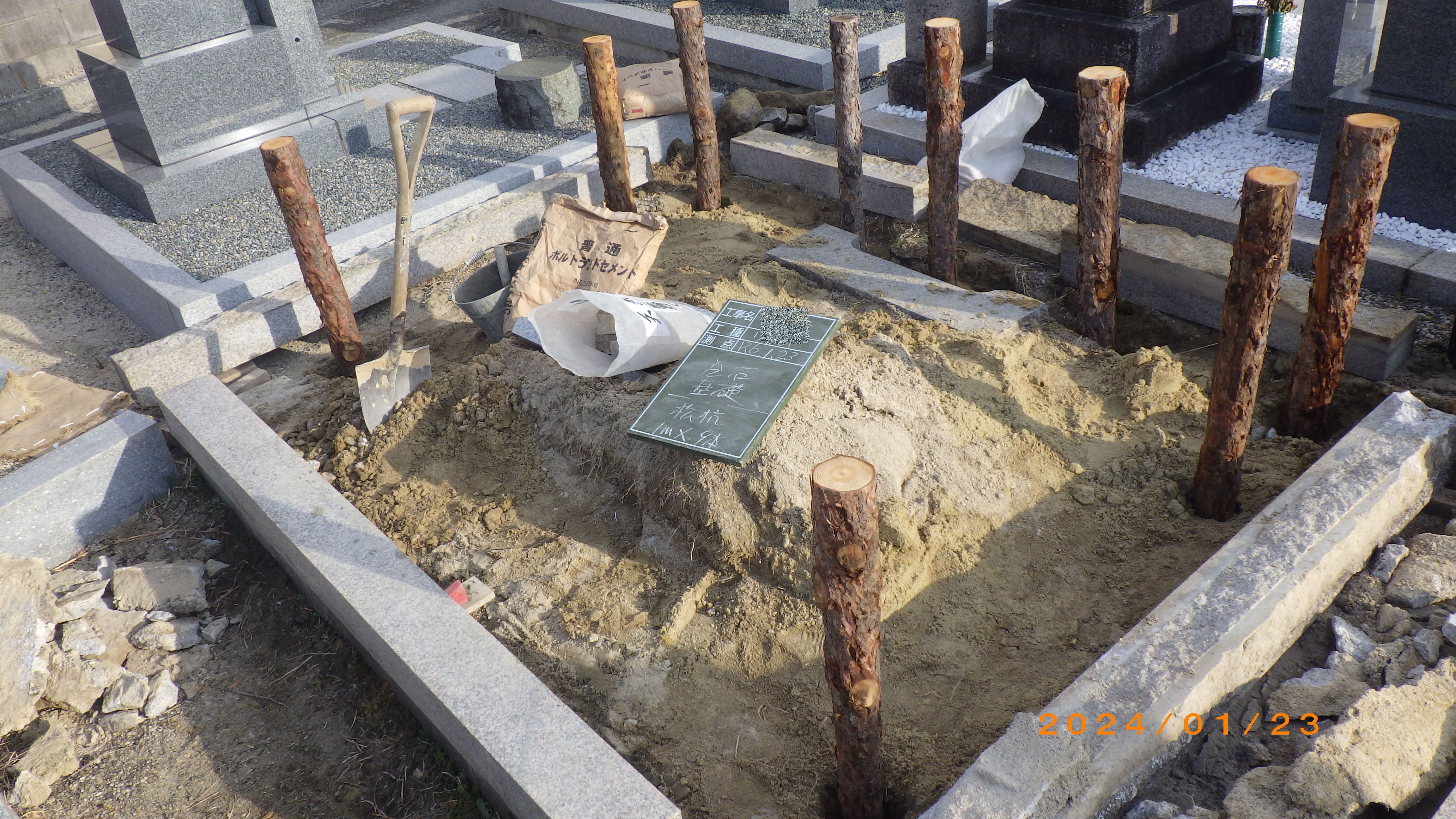 では建墓作業に入ってまいりますが、いきなり石塔を据えたりするわけではないという、これもいつものことです。