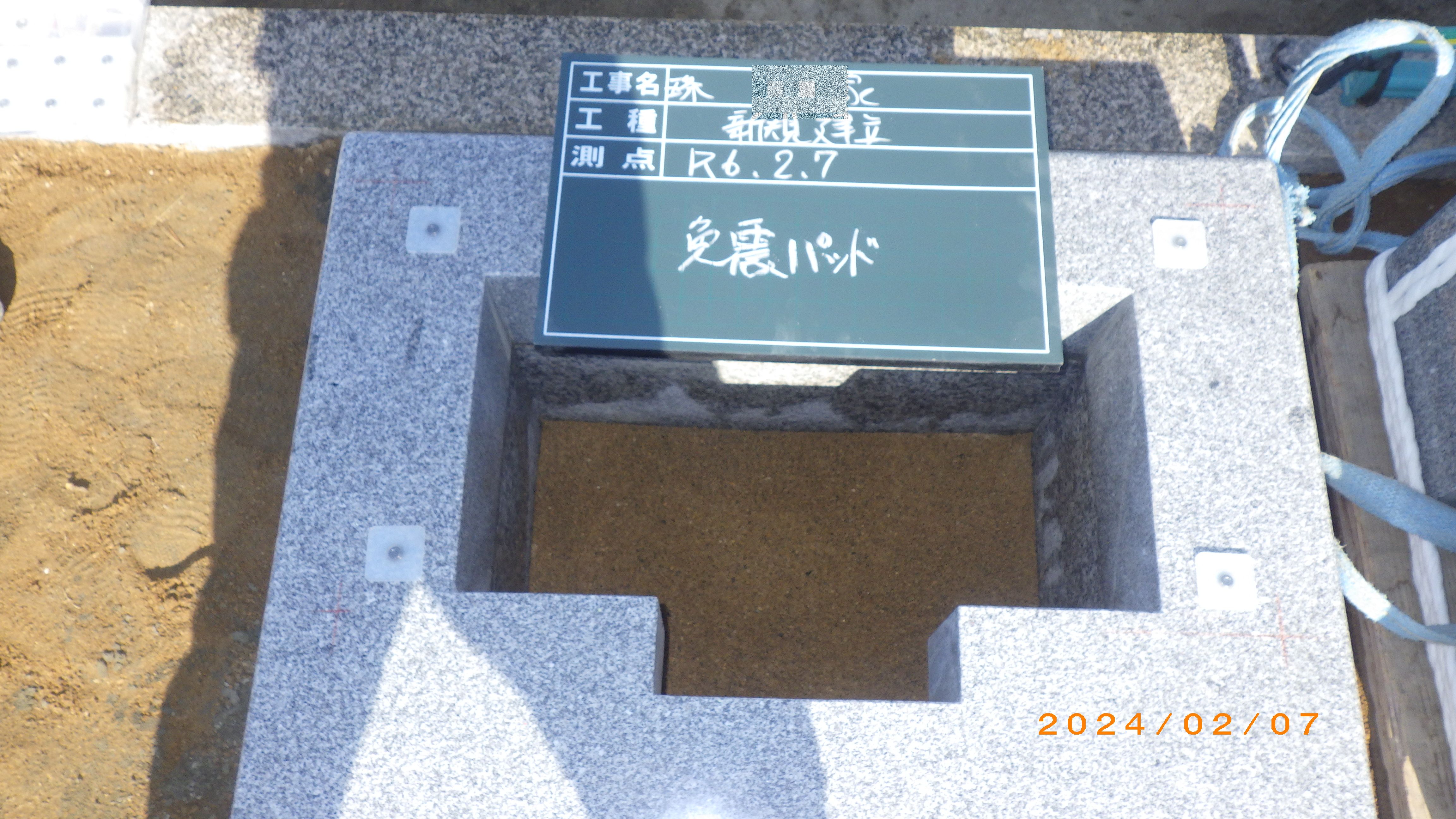 下台の上に上台を乗せ、さらにその上に竿石を乗せるという順になりますので、上台の上にも免震パッドが挟まれます。