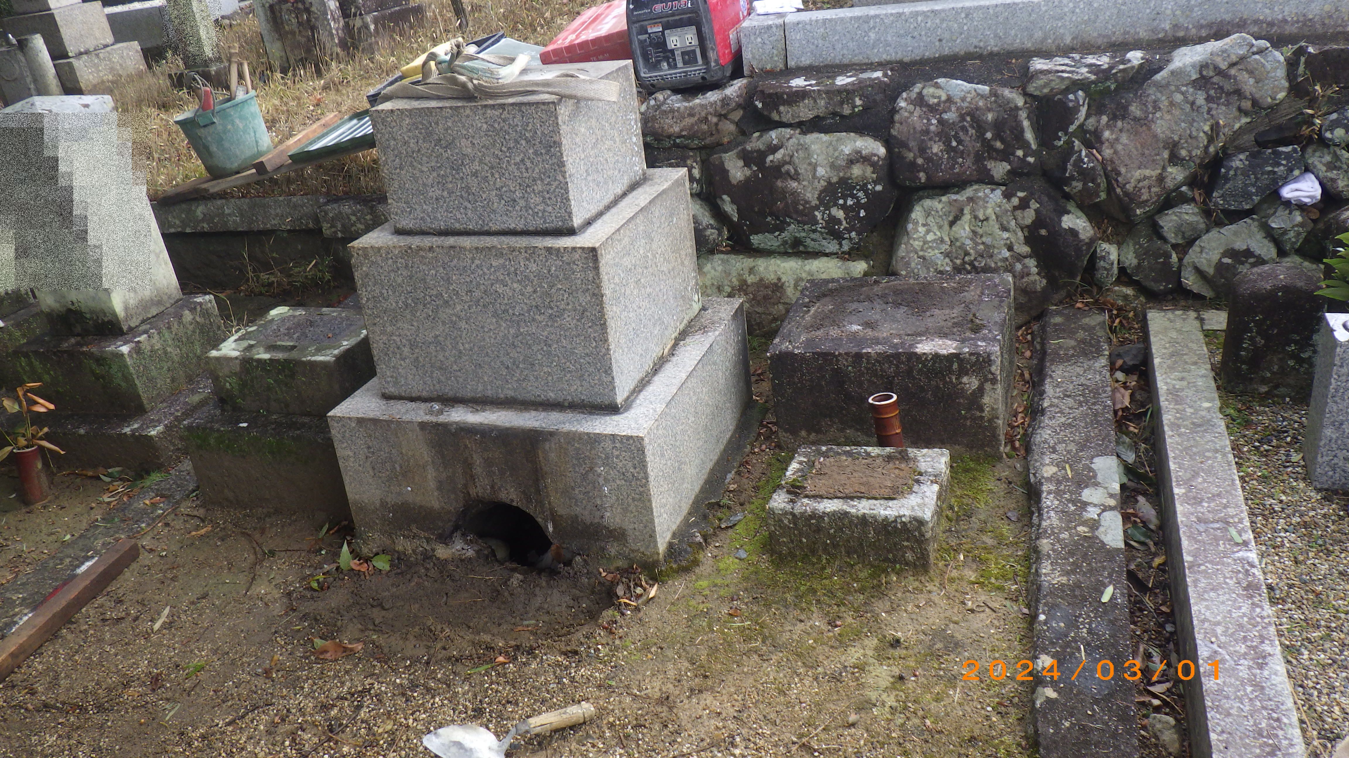 地下部分にある納骨室を抜き出すと、地面に穴が開いた状態になることが多いので、必要に応じて新しい土を補充することもします。