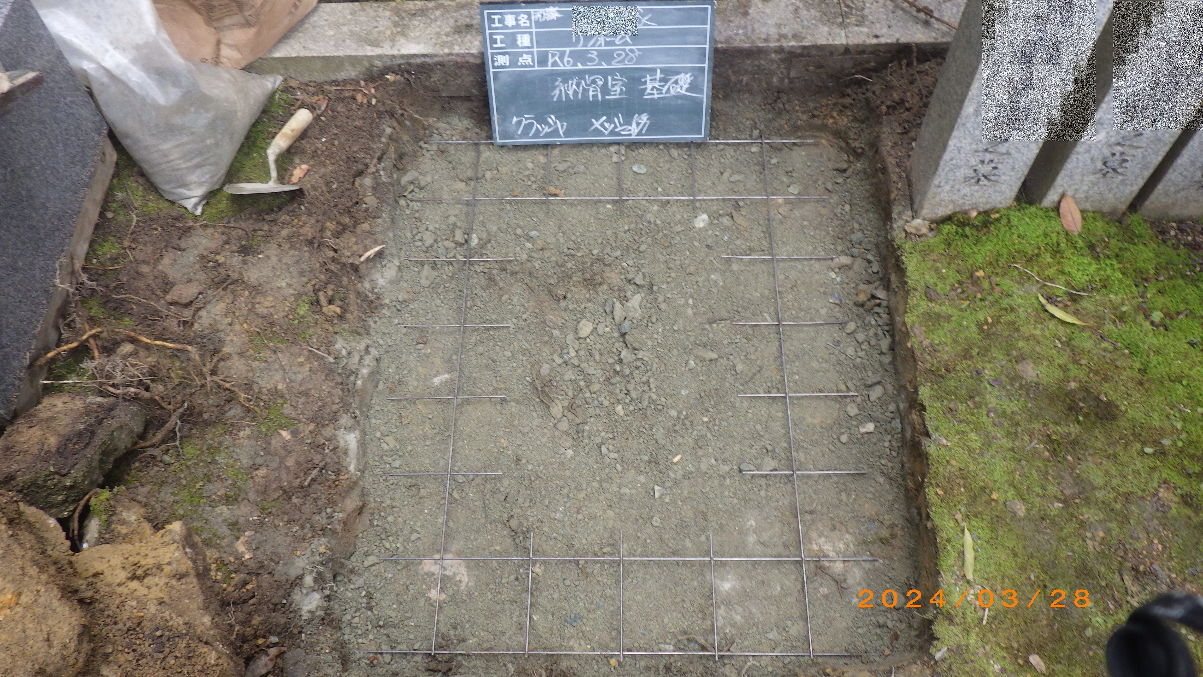 新規で石塔を建てる場合になぞらえて言えば、納骨室を入れるための掘り方が終わったという段階になりますね。