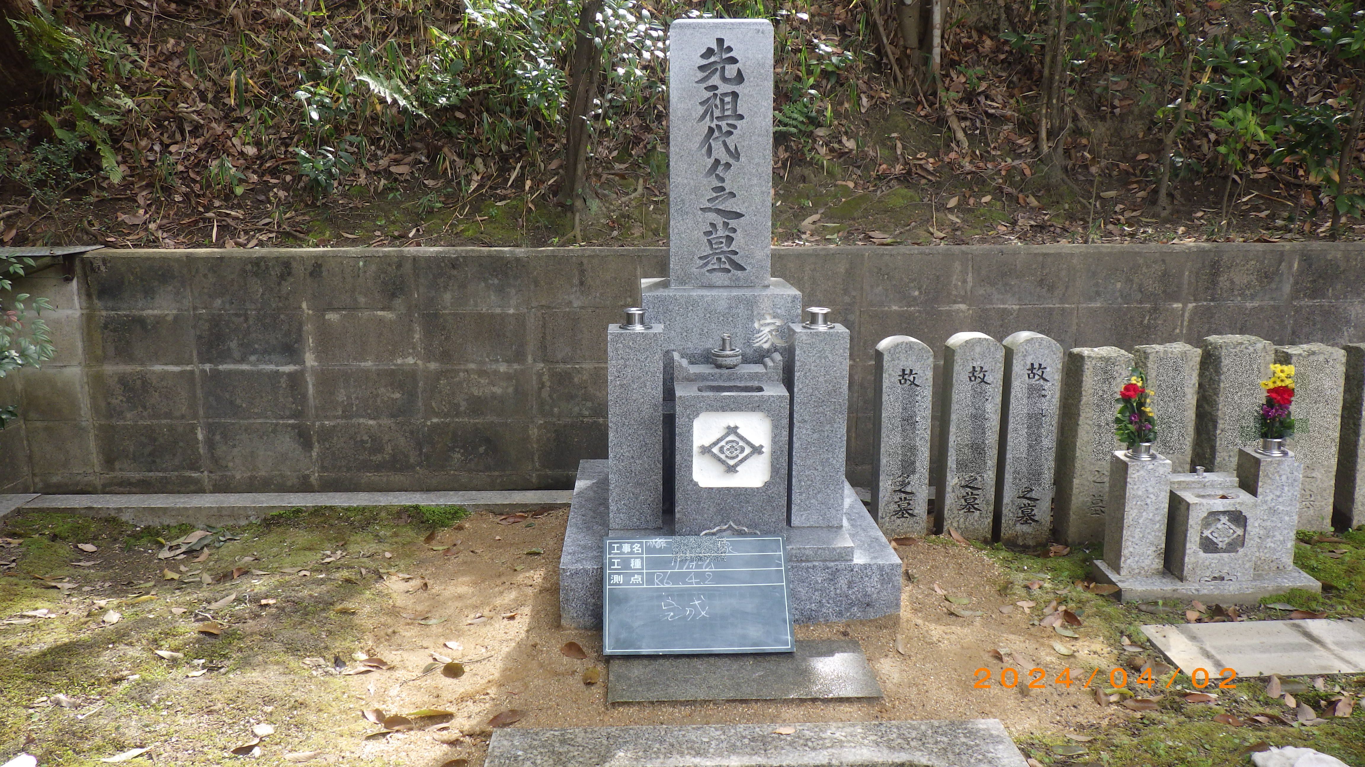 秋篠西迎寺墓地での石塔のリフォーム工事、これにて完成です。