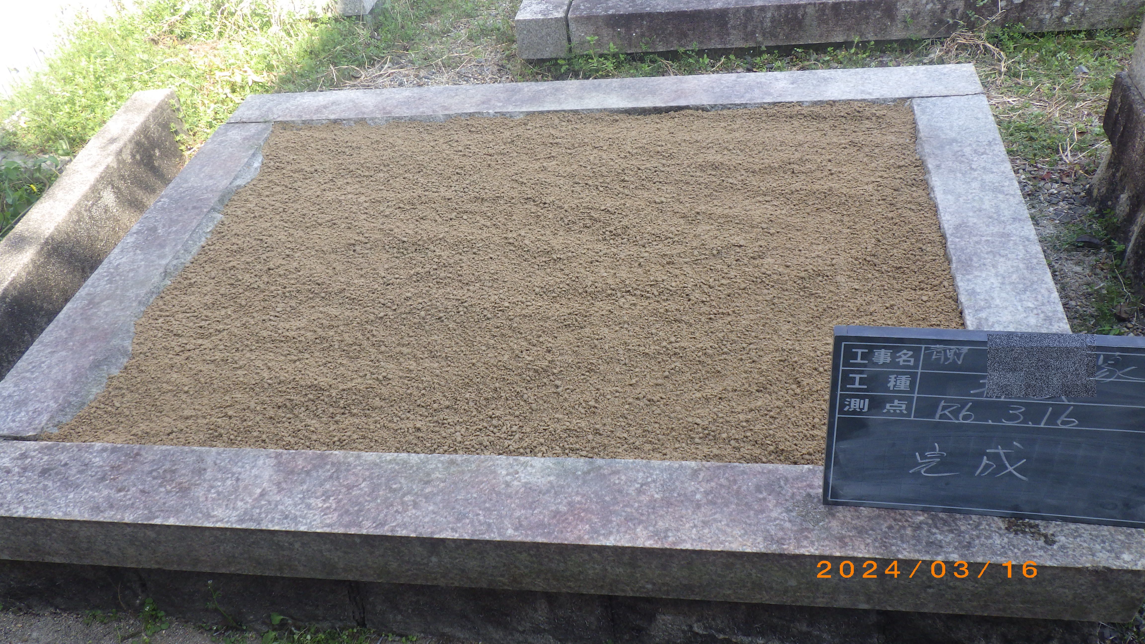 さらに、お手入れするお施主さんがいなくなっても草など生えにくいように、防草土を入れて整地して仕上げとします。